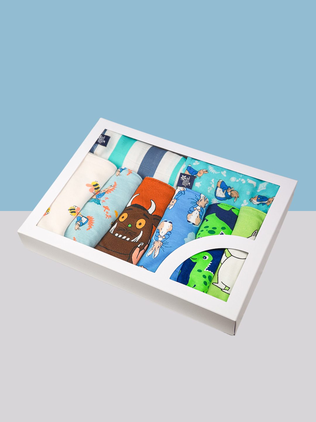 Each bib features a unique and playful design, ideal for baby boys and their everyday adventures. From beloved characters like Peter Rabbit™ and The Gruffalo™ to the roar-some Maple the Dino, there’s a bib for every mood, outfit, and milestone.