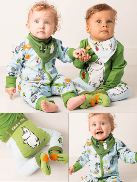 Our Popular Moomin™ Summer romper is destined to delight both adults and kids alike. The Lime Green background is printed with our all over lovable Moomin™ character design.