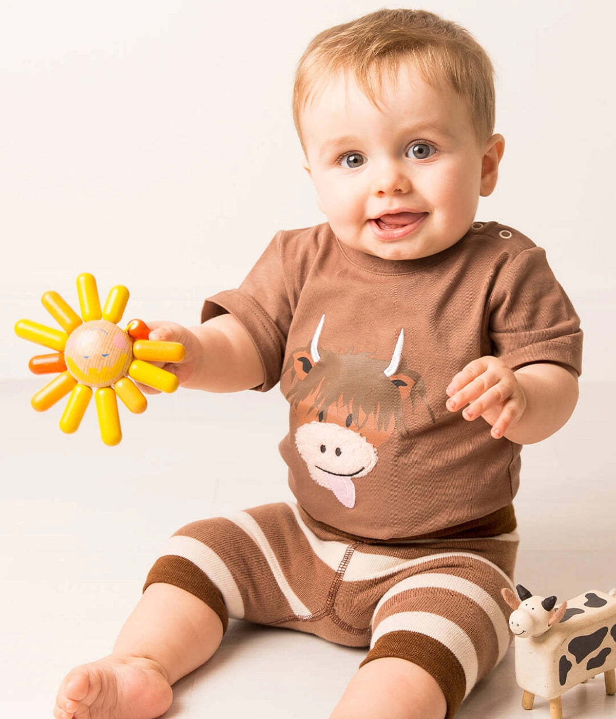 Our popular Neutral Highland Cow collection has been given a summer makeover. Introducing our new super cute neutral Tee featuring our adorable Highland Cow Character!