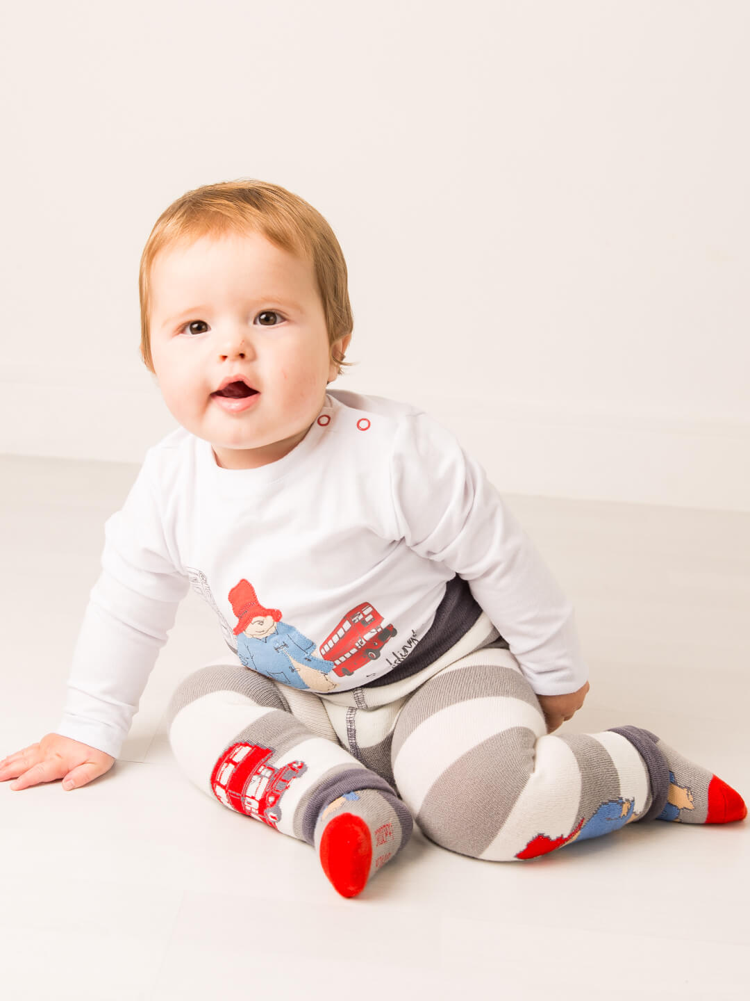 Our adorable Paddington™ Loves to Travel stripy leggings feature a playful print of the beloved protagonist wearing his old bush hat, blue duffle coat, and Wellington boots. They are guaranteed to brighten up your little ones' day!